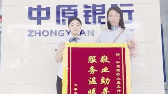 近日,客户高女士专程来到中原银行太康支行,对该行工作人员拾金不昧的行为表达了由衷的感谢,并赞扬了该行的优质服务。 前几天,该行员工陈慧玲在巡检厅堂时,捡到了1万元现金。面对这一突发情况,她立即向该行相关负责人报告,并将现金交与柜台工作人员暂时保...详细>>