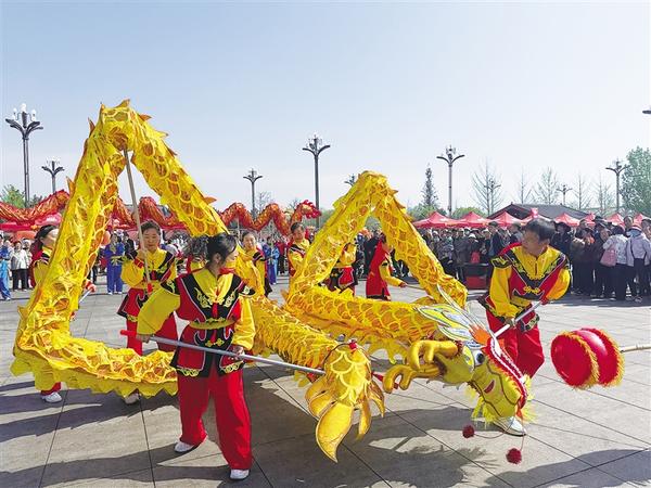 4月7日上午,第三届周口伏羲文化旅游节迎来了一场别开生面的文化盛宴——非遗社火走进伏羲文化广场,舞龙、舞狮、战鼓等精彩表演轮番登场,引来八方游客驻足喝彩。记者 侯俊豫 通讯员 庄秋薇 摄