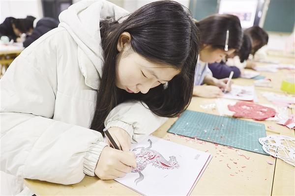 学生用刻刀认真创作剪纸作品。12月25日,淮阳红旗中学开展“巧手剪纸迎新年”活动。该校剪纸社团的学生在老师指导下,手持剪刀、巧运刻刀,精心创作以生肖“马”为主题的剪纸作品。此次活动不仅锻炼了学生的实践能力,提升了艺术审美,更让他们在亲手制作中真切感受到中华优秀传统文化的独特魅力。记者 侯俊豫 通讯员 黄学才 摄
