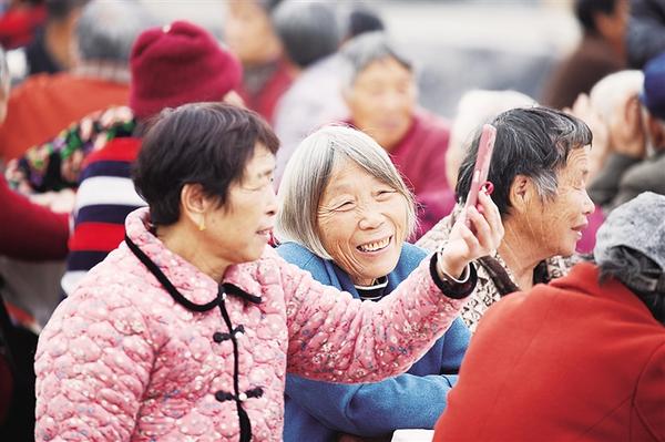 10月29日,老人通过视频直播向家人展示老人节盛况。当日,沈丘县北杨集镇林寨行政村举办第十五届老人节,全村60岁以上老人欢聚村广场。该村党支部操办宴席,主打当地非遗美食“马义士十大碗”。老人们品佳肴、话家常,这场延续多年的活动,生动展现了当地尊老敬老的良好氛围。记者 刘俊涛 梁照曾 摄
