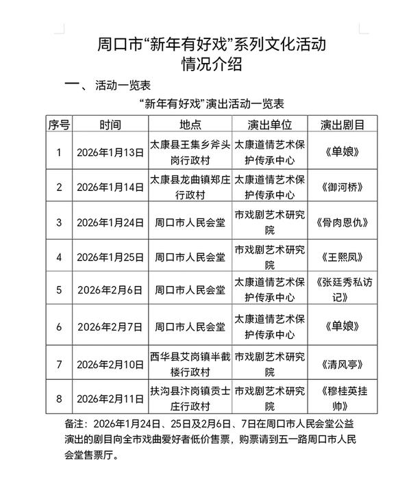 戏韵悠长承古韵,好戏连台润民心。继1月5日前成功举办7场高品质演出并广受好评后,我市“新年有好戏”系列文化惠民活动为进一步满足群众的文化需求,丰富群众的精神文化生活,从1月13日至2月11日,再推出8场精彩演出,喜欢戏曲的朋友不要错过。记者 黄佳(详见下表)