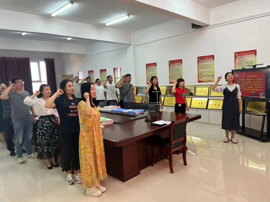 活动最后,在屈书记的带领下,学校的党员教师重温了入党誓词:“我志愿加入中国共产党,拥护党的纲领,遵守党的章程,履行党员义务,执行党的决定,严守党的纪律,保守党的秘密,对党忠诚,积极工作,为共产主义奋斗终身,随时准备为党和人民牺牲一切,永不叛党。”宣誓中每个党员对照誓词找标准、找差距,找回入党时的真诚与激情,进一步坚定了立场信念,深化了全心全意为人民服务的理想信念。进一步增强党员教师的党性意识、宗旨意识,感受到了作为一名共产党员的自豪和责任。