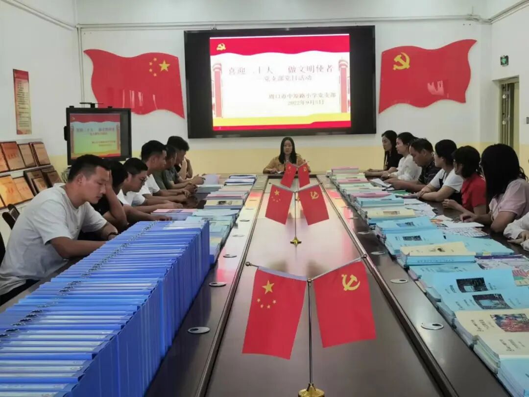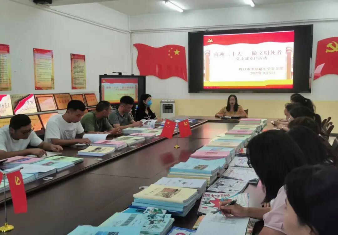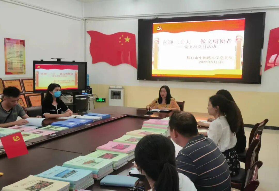 “百年恰青春,奋斗正当时。”在喜迎党的二十大和迎接全国文明城市创建之际,为切实加强对党员教师的教育管理,夯实学校党支部工作基础,进一步发挥党员先锋模范作用,增强党员教师的使命感、责任感和荣誉感。2022年9月5日下午,中原路小学党支部在学校党员活动室开展了“喜迎二十大 做文明使者”为主题的党日活动。