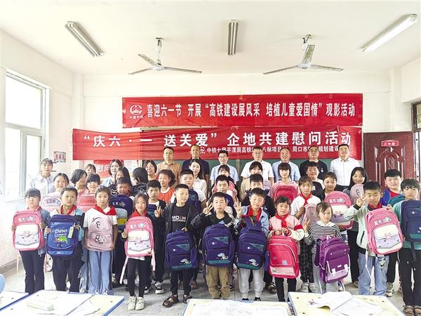 在西华县东王营乡老家小学,中铁七局集团新建平漯周高铁站前八标项目经理部和市铁办为小朋友们送上节日祝福,并赠送学习用品和生活用品(如图),勉励小朋友要好好学习,坚定不移听党话、感党恩、跟党走,努力做有志气有骨气有底气的新时代好少年。同时,希望学校的教育工作者们始终坚守初心,为党育人,为国育才,像心疼自己的孩子一样关爱每一个学生。老家小学的小朋友们表演了精心准备的文艺节目,展示出他们朝气蓬勃积极向上的精神面貌。(牛思光)
